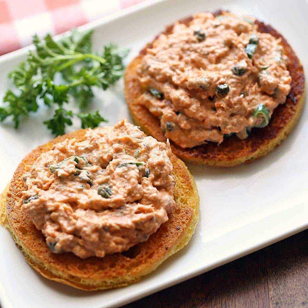 Blend canned tuna with cream cheese, lemon juice, chopped dill, and a pinch of salt. Serve with crackers or fresh veggies for a savory snack or appetizer.