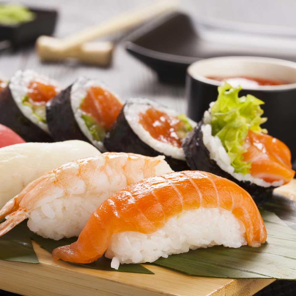 Mix canned salmon with a little mayonnaise and sriracha sauce. Roll in sushi rice and nori for a quick, homemade sushi roll.